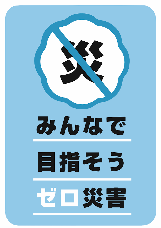 現場の安全を推進する取り組みの一環として公募した、建設現場、作業現場のポスター・イラストになります。 テーマは「みんなで目指そう0災害」です。是非現場でご活用下さい。
