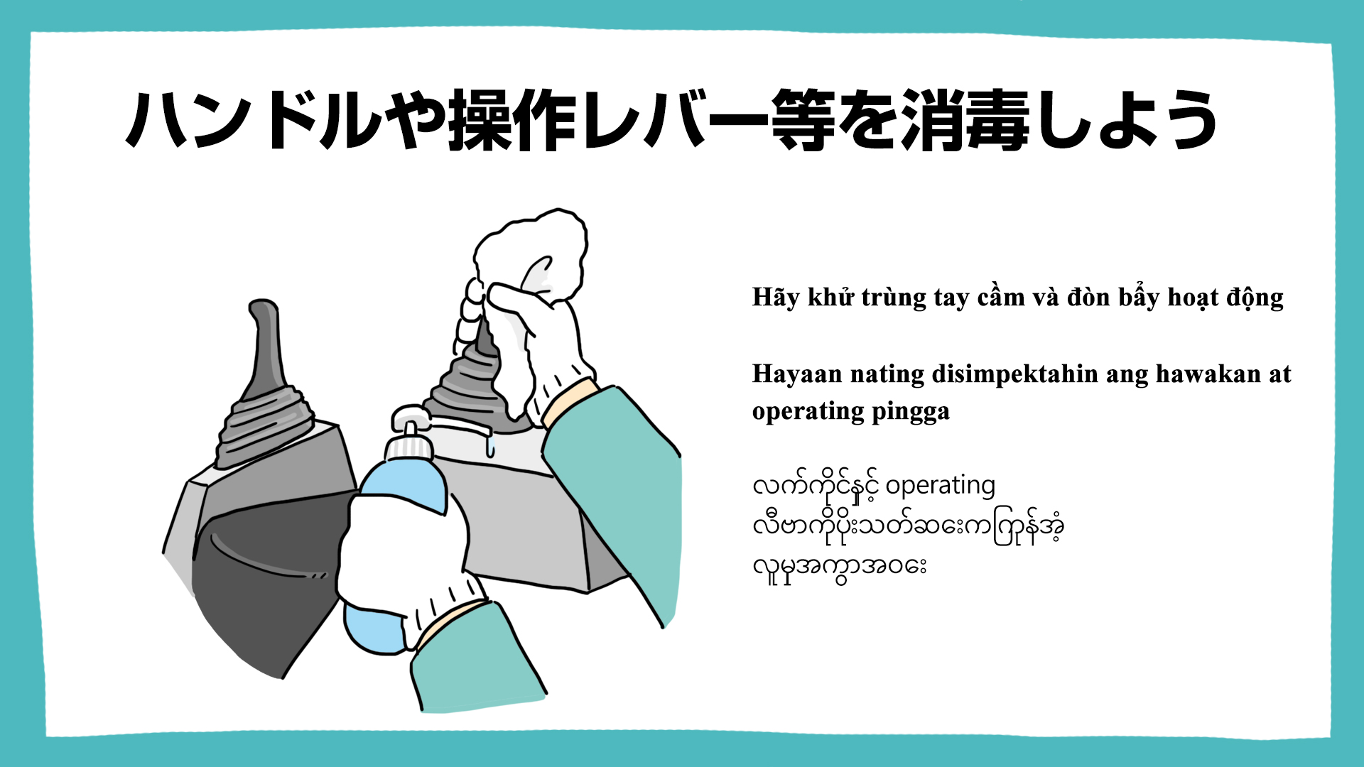 ハンドルや操作レバー等を消毒しよう