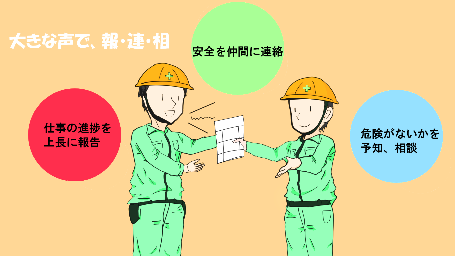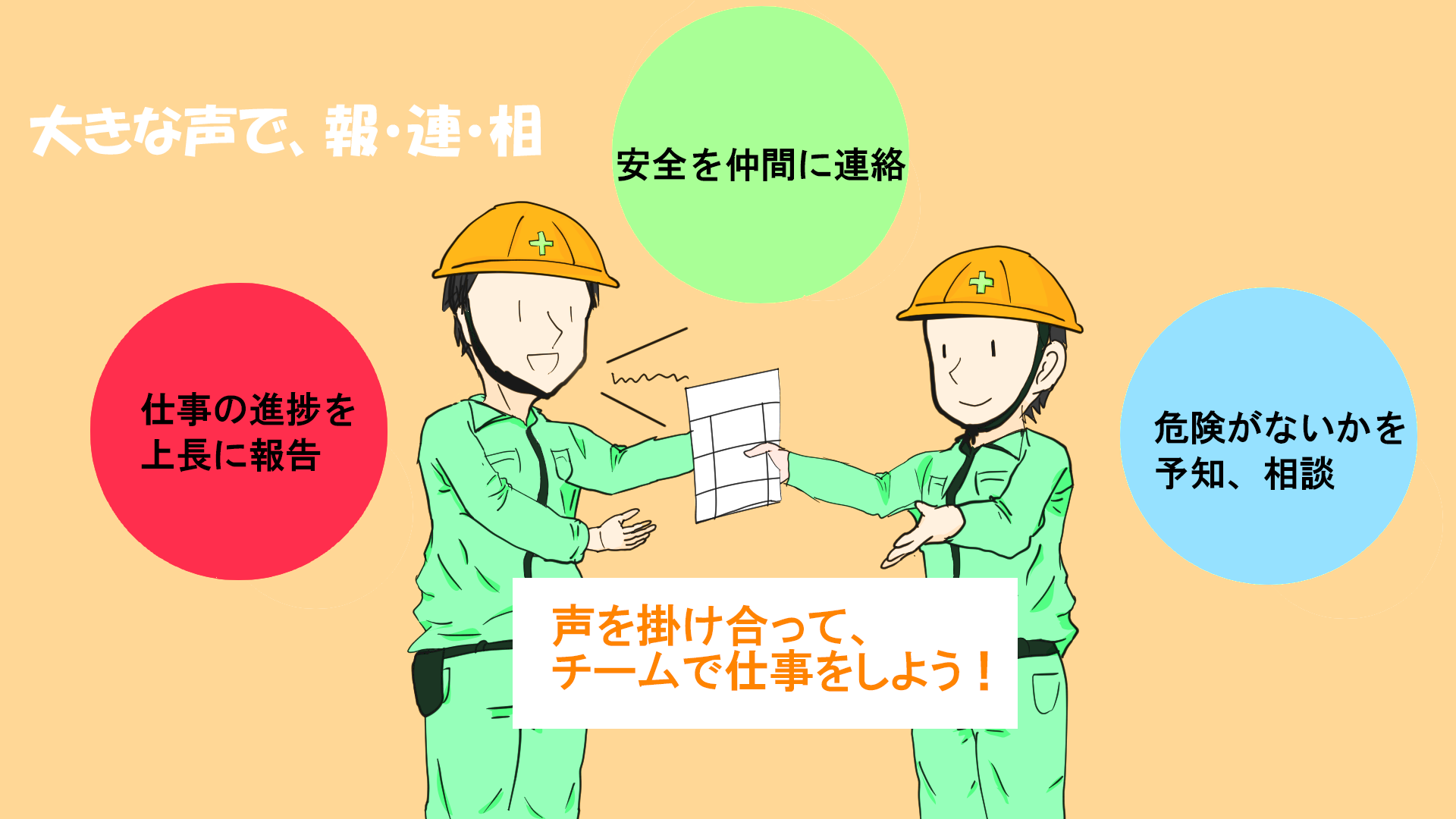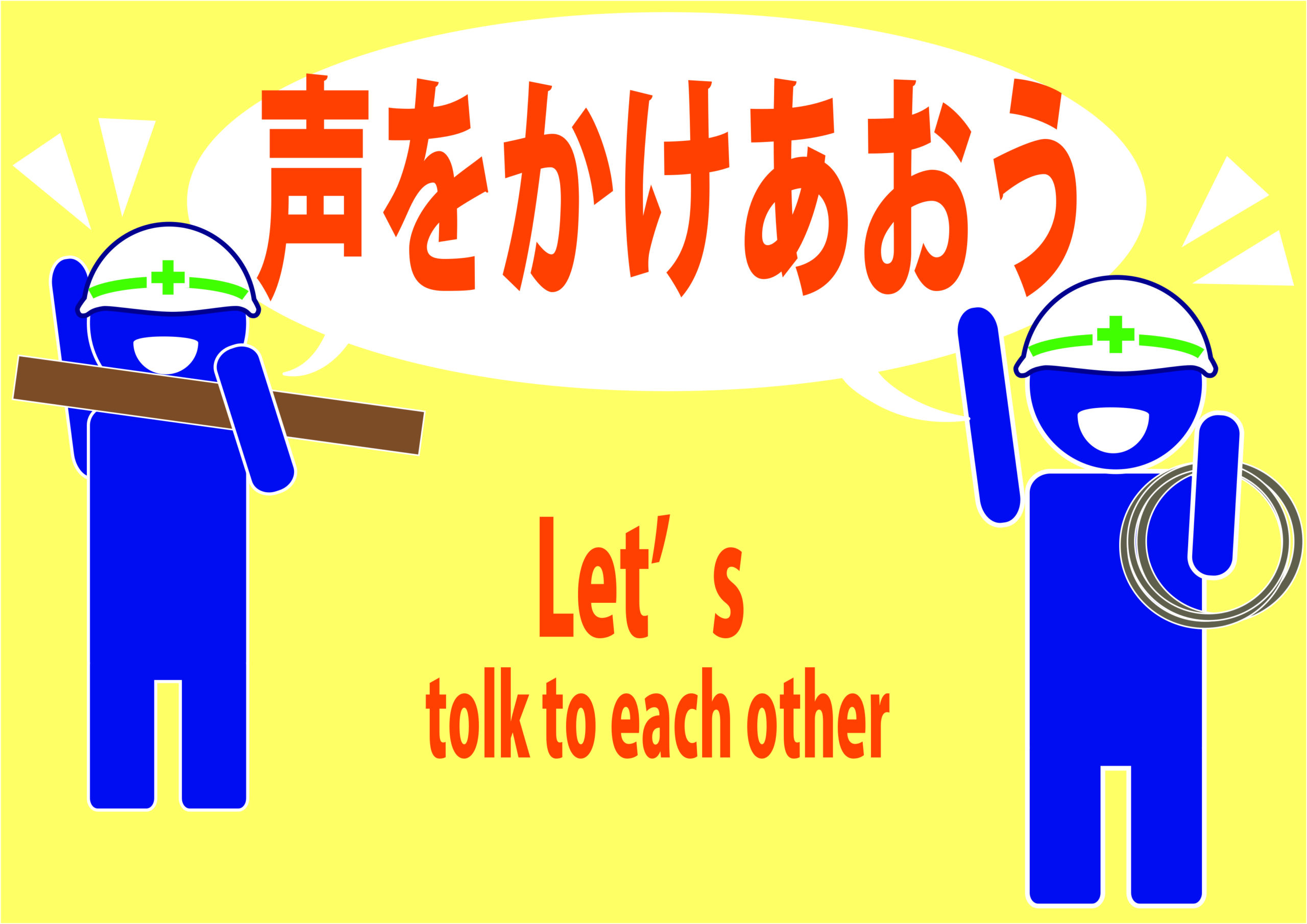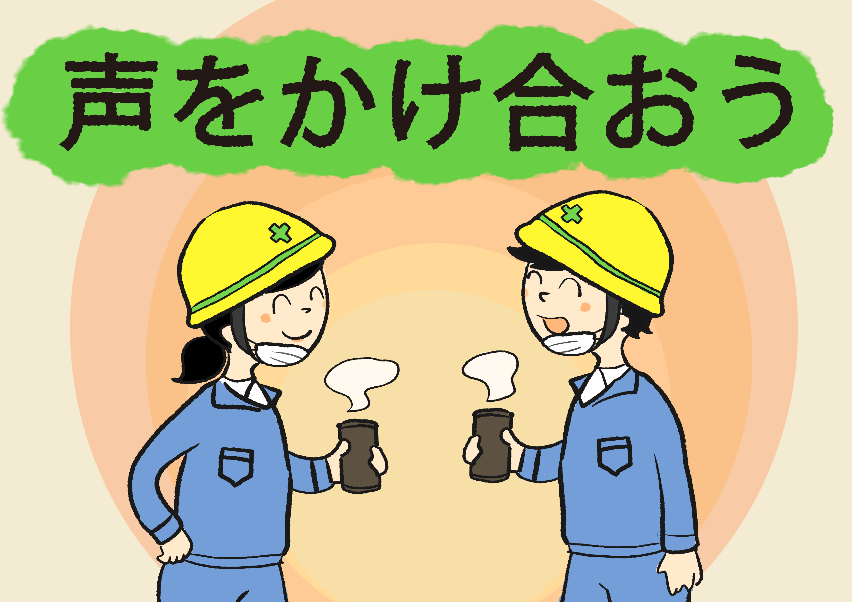 現場の安全を推進する取り組みの一環として公募した、建設現場、作業現場のポスター・イラストになります。 テーマは「声を掛け合おう」です。是非現場でご活用下さい。